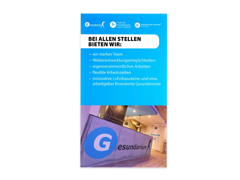 Für das Fitnessstudio Gsundarium sollten verschiedene Anzeigenformate und Stellenanzeigen entwickelt werden, die sowohl neue Mitglieder ansprechen als auch potenzielle Mitarbeiter gewinnen.